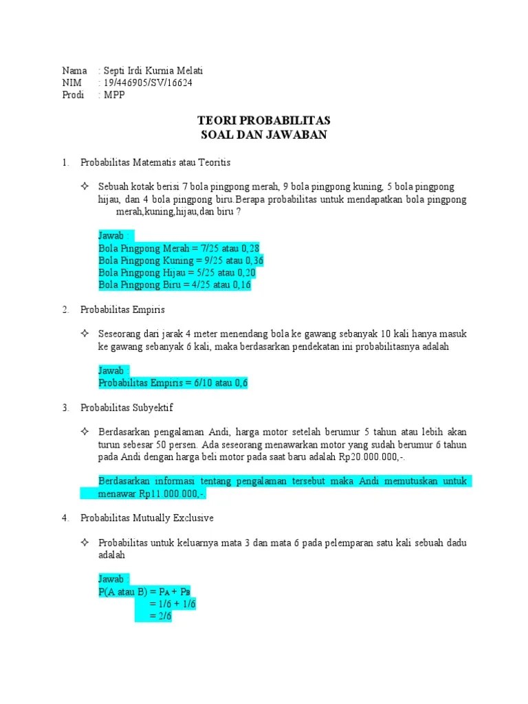 Soal Uas Probabilitas Terapan - Viral Soal Uts Statistika Dan Probabilitas / Pt gs mengklaim berat buah mangga "b" adalah 350 gram dengan standar deviasi 50 .. Studi kasus menyangkut seluruh materi yang terkait dengan bidang teknik sipil. Hitunglah kombinasi soal yang mungkin dapat dibuatnya dalam ujian tersebut. Probabilitas dan teori keputusan, metode. Probabilitas bahwa seorang remaja pria memiliki tingkat . Di bawah ini adalah beberapa file .